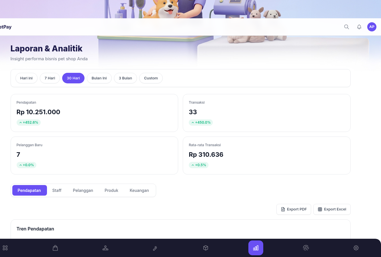 Dari kasir sampai laporan keuangan, PetPay handle semuanya.